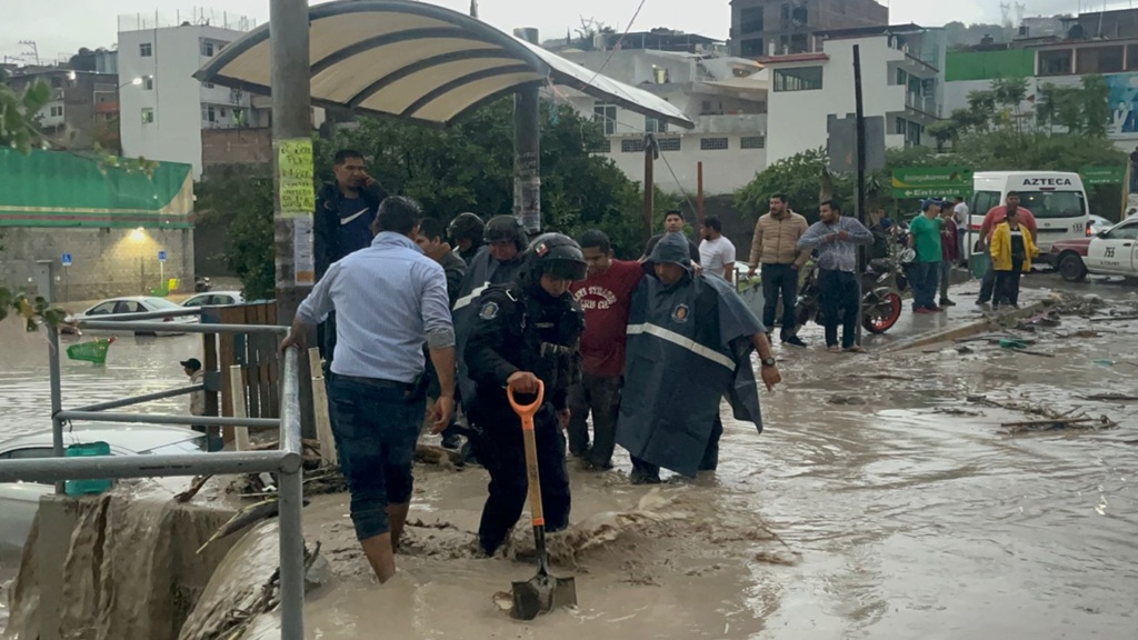 Torrenciales lluvias provocan inundaciones y atrapa autos en Acapulco