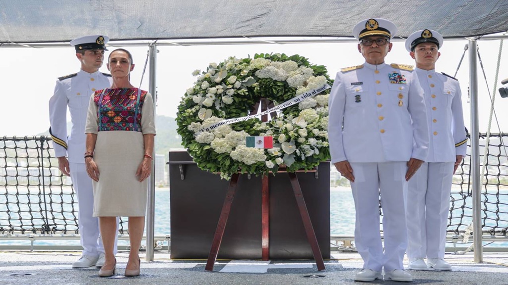 La gobernadora Evelyn Salgado Pineda y la presidenta de México, Claudia Sheinbaum Pardo conmemoraron el aniversario del Día de la Marina Nacional, en donde se reconoció la labor de los hombres y mujeres de mar, pero también de quienes perdieron la vida en cumplimiento de su deber.