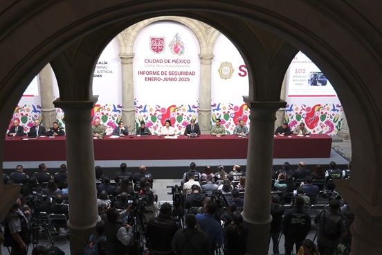 Ciudad de México 08/07/2025 La Jefa de Gobierno, Clara Brugada Molina, presentó el Informe de Seguridad correspondiente al primer semestre
