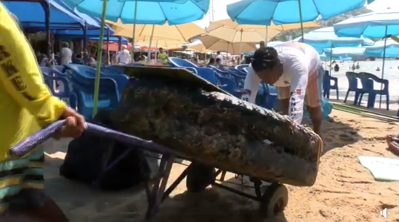 En la imagen, integrantes de la Cooperativa Plata Unidas Caleta y Caletilla sacaron de esta última playa botellas de plástico, vidrio, llantas y hasta pedazos de embarcaciones que se hundieron con el huracán Otis que impactó el 25 de octubre de 2023.