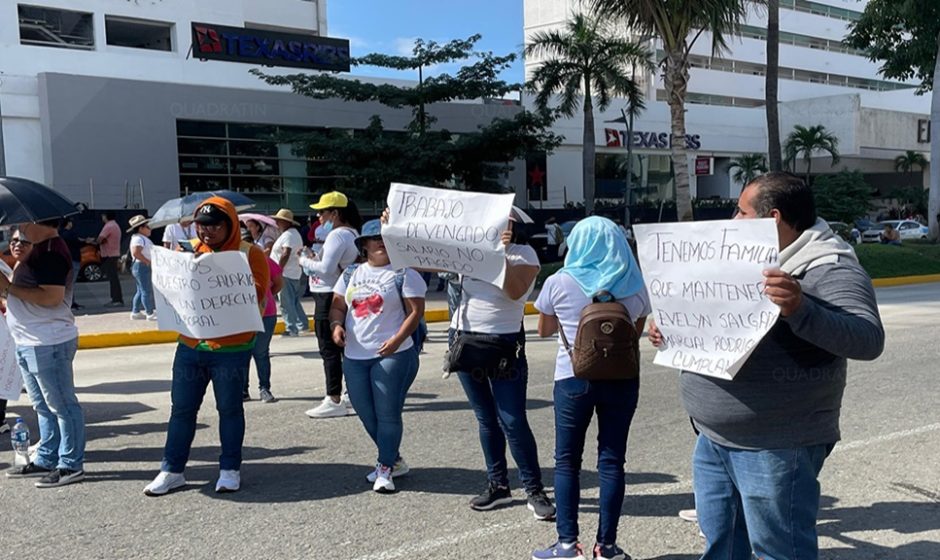 La movilización de las personas inconformes comenzó a las 11 horas y advirtieron que no se retirarán hasta que el pago se vea reflejado en sus cuentas de nómina.