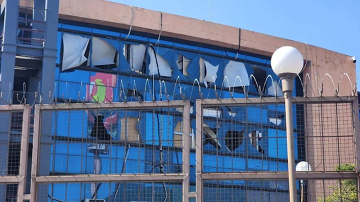 Ante la presión que realizaron los manifestantes quienes desde afuera quebraron los ventanales de las oficinas y amagaron con entrar en una de las puertas laterales. Antimotines de la Guardia Nacional estaban adentro, pero eran rebasados en número.