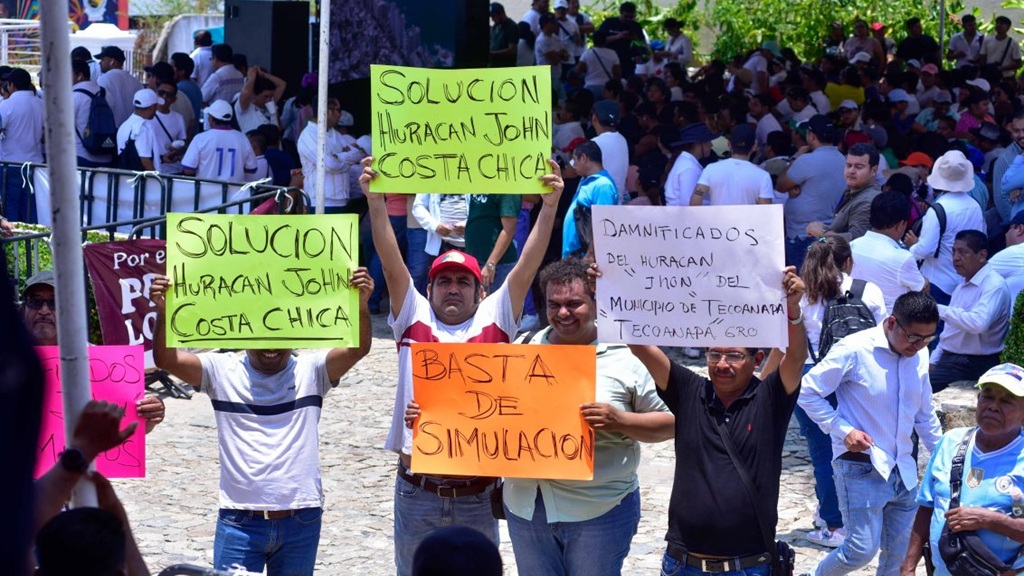 El representante de los afectados de San Marcos, Mario Villanueva Villanueva, dijo que sigue la falta de atención que ha habido del gobierno federal desde hace siete meses del huracán John. Las poblaciones más afectadas son San Marcos, Tecoanapa, Las Vigas, Cruz Grande, Azoyú, Juchitán e Iguala.