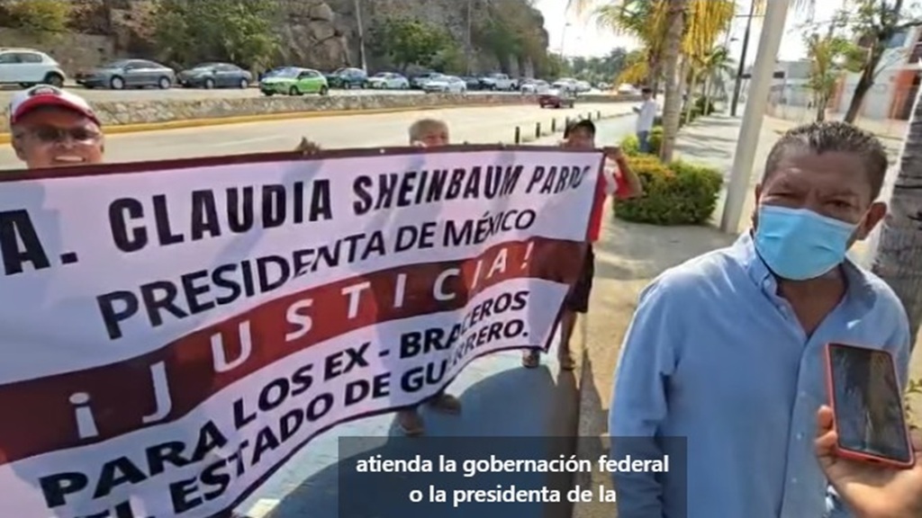 Unos 20 ex braceros encabezados por su representante legal Carmelo Loeza, bloquearon de forma intermitente la Costera, frente al Fuerte de San Diego, para exigir una audiencia con la presidenta Claudia Sheinbaum Pardo que este viernes visita Acapulco.