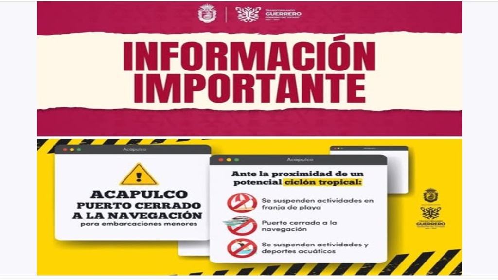 Capitanía de puerto cierra completamente la navegación en Acapulco por huracán Erick