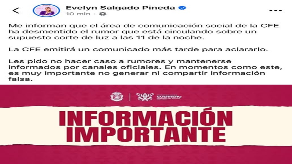 La gobernadora Evelyn Salgado, desmintió la advertencia de la CFE confirmó lo siguiente: