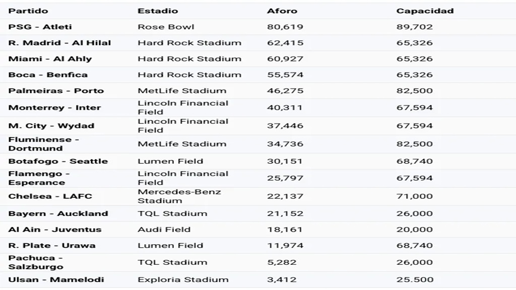 A ese respecto, El Español publicó una tabla comparando las asistencias a los partidos de la primera ronda con la capacidad de los estadios.