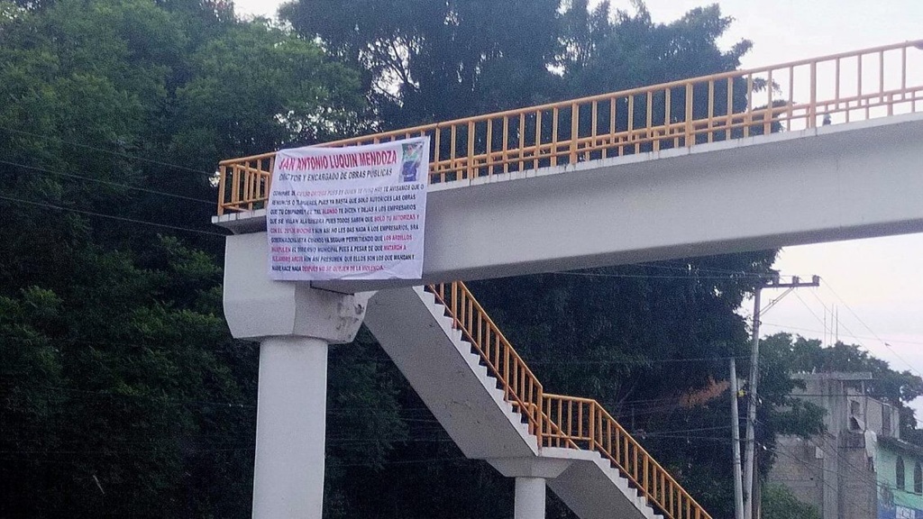 Según testigos esta mañana fueron colgadas dos mantas con mensajes amenazantes contra el director de Obras Públicas del Ayuntamiento de Chilpancingo, Juan Antonio Luquín Mendoza, informaron autoridades.
