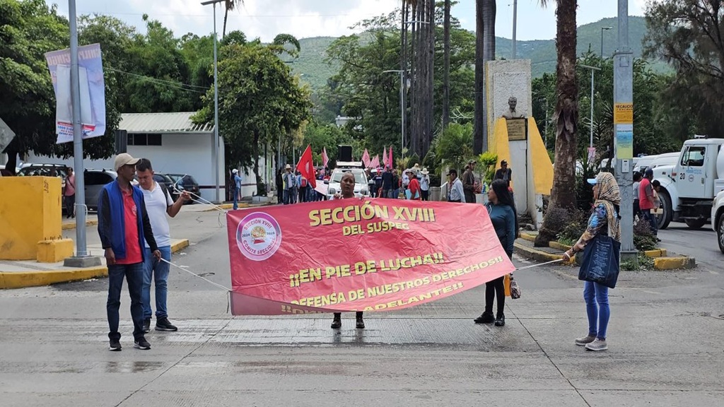 Unos 200 maestros, agremiados a la Sección 18 del Sindicato Único de Servidores Públicos del Estado de Guerrero (SUSPEG) bloquearon las avenidas Lázaro Cárdenas y Ruffo Figueroa para exigir mejoras salariales en la capital del estado.
