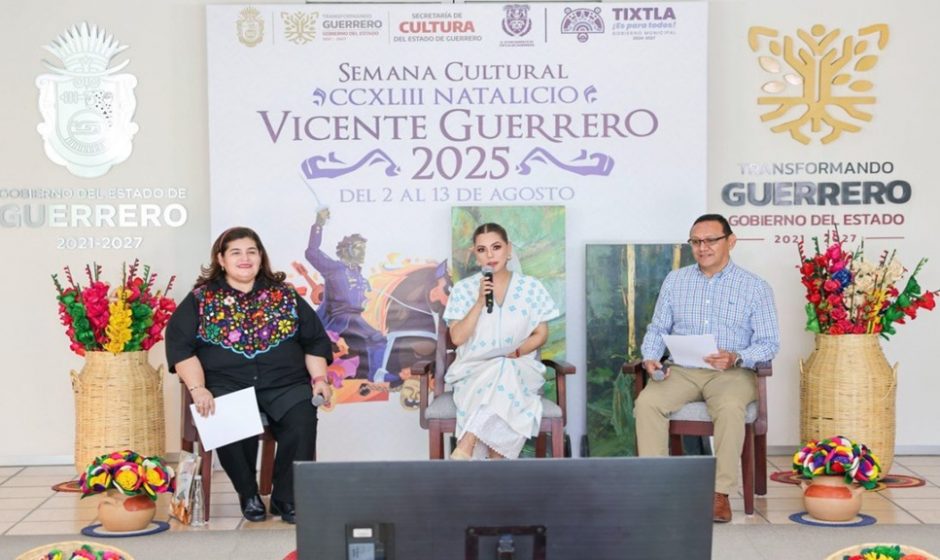 La gobernadora Evelyn Salgado Pineda anunció la Semana Cultural Vicente Guerrero 2025, que se llevará a cabo del 2 al 13 de agosto en Tixtla, en conmemoración del 243 aniversario del natalicio del consumador de la Independencia de México y máximo héroe de esta entidad.