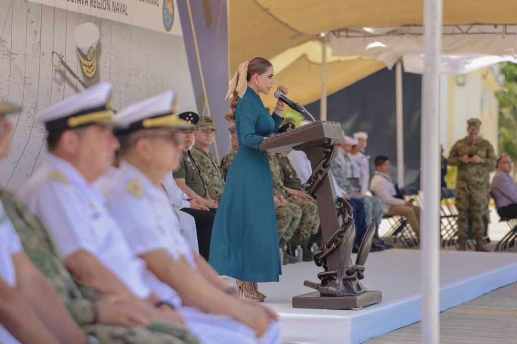 Durante su asistencia a la Ceremonia de Entrega-Recepción del Mando de Armas de la Octava Región Naval, la gobernadora refrendó su compromiso de trabajar de la mano y en plena coordinación con la Marina Armada de México, para consolidar los avances en materia de desarrollo y contribuir a seguir consolidando la paz en el estado. De igual manera, se pronunció a favor de seguir priorizando una visión que “atiende las causas sin descuidar los efectos de la violencia, que entiende que la paz no se conquista con guerra, sino con trabajo, con inteligencia, con presencia y con confianza en el territorio”.