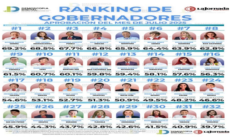 La gobernadora Evelyn Salgado Pineda, se posicionó como la segunda mandataria mejor evaluada de Morena a nivel nacional, de acuerdo con el más reciente ranking de aprobación realizado por la encuestadora Demoscopia Digital correspondiente a julio de 2025.