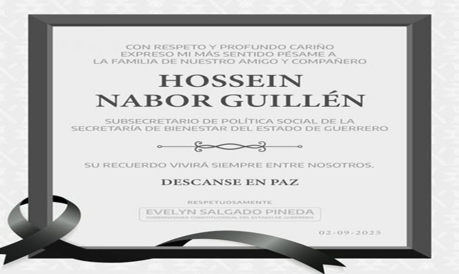 “Con respeto y profundo cariño, expreso mi más sentido pésame a la familia de nuestro amigo y compañero Hossein Nabor Guillén, Subsecretario de Política Social de la Secretaría de Bienestar del Estado de Guerrero.