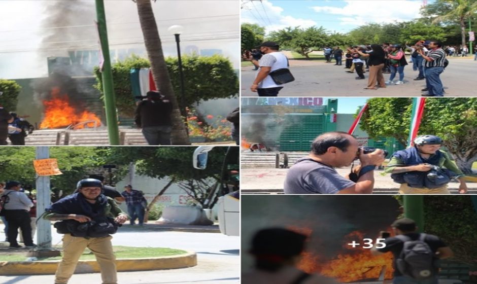 Aproximadamente a las 13:30 horas, culminó el mitin y los normalistas lograron introducir una camioneta blanca marca Nissan, tipo NP500, misma que incendiaron con bombas molotov y petardos.