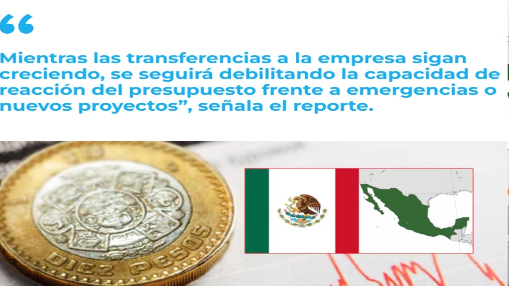 El rescate de Pemex continúa siendo uno de los principales compromisos del Estado mexicano. El análisis subraya que este gasto compite con áreas estratégicas como salud, educación y seguridad, restando recursos que podrían dirigirse a mejorar servicios públicos o infraestructura.