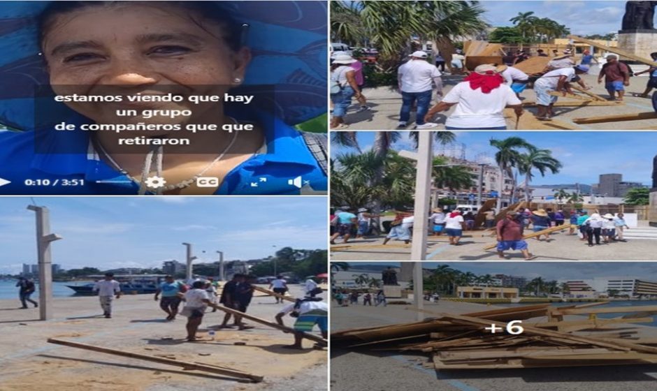 Tras una semana de que trabajadores de la Fonatur colocaran un tapiado/bloqueo en el Malecón, el cual obstría la vista hacia la bahía, integrantes del Frente de Prestadores de Servicios Turísticos de Acapulco lo derribaron y dejaron la madera en montones. “Nosotros solo venimos a quitar la obstrucción hacia el mar, no venimos a robar (triplay y barrotes), no somos ladrones”.