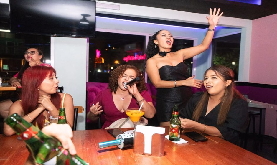 Al filo de las once de la noche, con micrófonos-mudos- en mano. Las mujeres entonan como un himno la canción de La Guzmán… “Hacer el amor con ocho- perdón con otro”, sin dejar de ver el video de la roquera mexicana. El elixir de los dioses sigue corriendo en las mesas. Algunos hombres acompañando a sus parejas “jóvenes””, se suman al coro para no pasar desapercibidos.