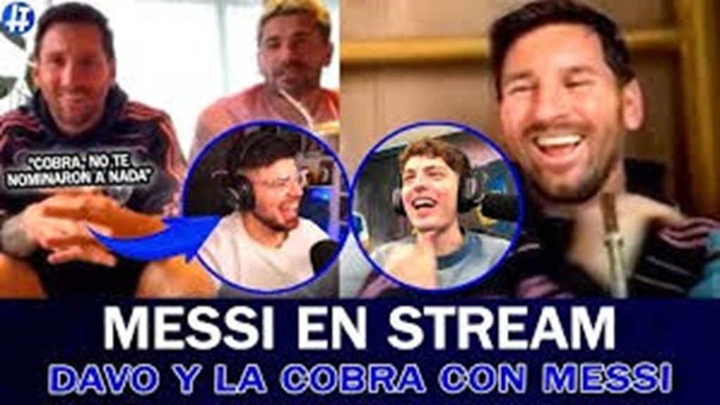 Ese que se ilustra con La Cobra y Davo Xeneize extasiados ante la súbita aparición de Messi mientras hablan en vivo con Luis Suárez
