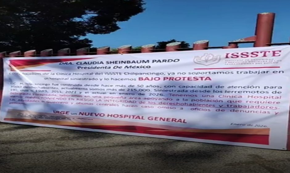 Trabajadores de la clínica-hospital del Instituto de Seguridad y Servicios Sociales de los Trabajadores del Estado (ISSSTE) en Chilpancingo colocaron lonas de protesta en el área de urgencias y en la entrada principal del inmueble, para denunciar que laboran bajo protesta ante el riesgo de colapso del edificio severamente dañado por múltiples sismos registrados en la entidad a lo largo de las últimas décadas.