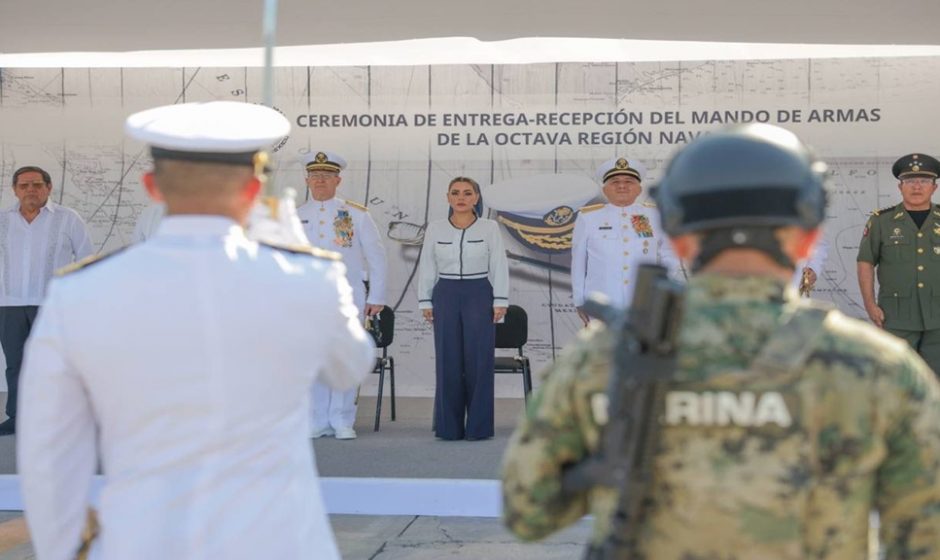 En el acto protocolario que se llevó a cabo en las instalaciones de la Base Naval, la mandataria estatal dio la bienvenida al comandante Martín Enrique Barney Montalvo a la entidad, expresando su voluntad para trabajar de manera coordinada.