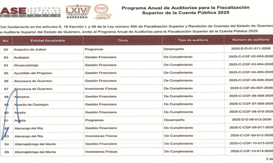 Destáquese que esta vez no es la Auditoría Superior de Guerrero (ASE Gro) la que ha programado la mencionada “auditoría de cumplimiento forense”, sino directamente la Auditoría Superior de la Federación (ASF).