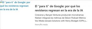 Las nuevas agencias de noticias no trabajan, en realidad, para la audiencia. Trabajan para el poder tecnológico. Es la tecnología el intermediaron con el poder para encender y apagar. Sin Veo 3, no habría más Noelia en Laliga. Sin The Sphere, habría Backstreet Boys sin más performance que su aún notable capacidad para bailar. Y sin OpenAI y Google, habría cada vez menos periodismo. Son ellos los que tienen el presupuesto. Son ellos los que tienen el revistero. Son ellos los más preparados para dar respuestas personalizadas.