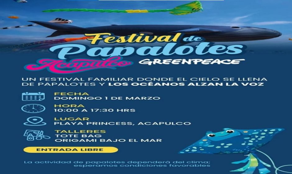 La Secretaría de Turismo del Estado, encabezada por Simón Quiñones Orozco, dio a conocer la realización del Festival de Papalotes Acapulco – Greenpeace México, un evento familiar que busca promover la convivencia, el cuidado del medio ambiente y el disfrute responsable de las playas del puerto.
