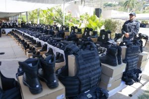 Además, realizó la entrega de 343 chalecos balísticos y el mismo número de cascos de protección con una inversión de 8.1 millones de pesos, así como 9 mil 256 uniformes operativos completos, incluyendo camisola, pantalón, playera, cinturón, gorra y botas tácticas, con garantía de durabilidad con una inversión de 50.9 millones de pesos, fortaleciendo la capacidad operativa de la Policía Estatal.