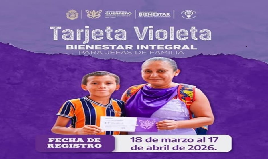 La Secretaría de Bienestar del gobierno de Guerrero abrió el periodo de registro para mujeres que deseen incorporarse al programa Tarjeta Violeta, dirigido principalmente a madres solteras y mujeres en situación de vulnerabilidad. La meta para este año es beneficiar a 20 mil mujeres en 30 municipios del estado, informó el titular de la dependencia, Pablo Gordillo.