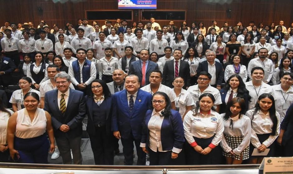 Durante el Modelo Parlamentario Universitario en la Cámara de Diputados, estudiantes manifestaron su apoyo al rector y a la aspirante de Morena a la gubernatura