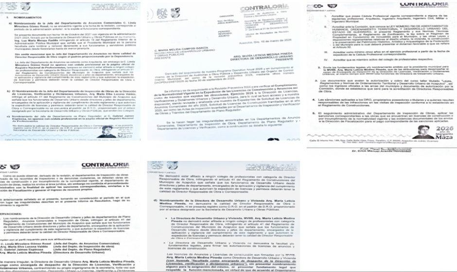 Esta redacción de Construnotas, la red Acapulco, se basa íntegramente en el Informe DAOPDU/2467/2025 de la Contraloría Municipal de Acapulco. Los posibles delitos o faltas administrativas mencionados son hipótesis jurídicas que corresponde determinar a las autoridades competentes: Fiscalía General del Estado, Tribunal de Justicia Administrativa y Órgano Interno de Control. Este medio no atribuye culpabilidad; expone hechos documentados por el órgano de control y formula cuestionamientos de interés público.