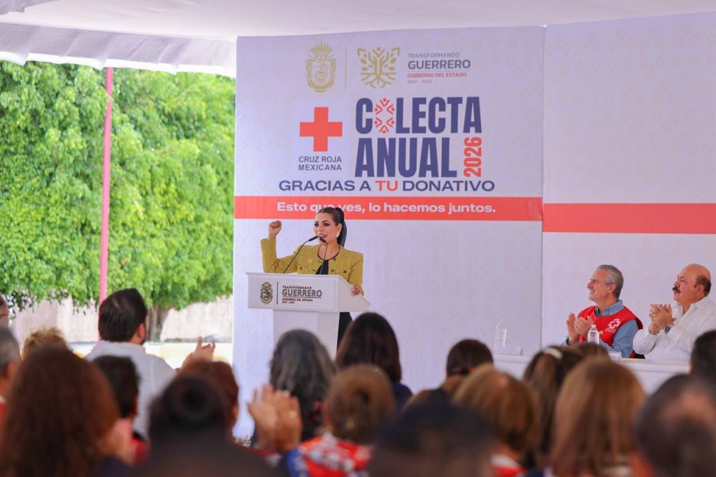 La gobernadora Evelyn Salgado Pineda encabezó el arranque en Guerrero de la Colecta Anual 2026 de la Cruz Roja Mexicana, acompañada por el presidente nacional de la institución, Eduardo de Agüero Le Duc, y la presidenta del DIF estatal, Liz Salgado Pineda.